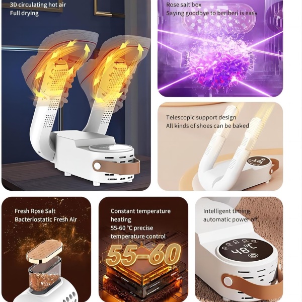 Κατανέμει ομοιόμορφα τη θερμότητα για να στεγνώνει τα παπούτσια χωρίς υπερθέρμανση ή παραμόρφωση των υλικών.